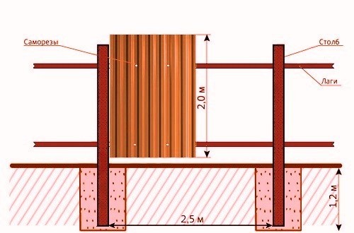 - Тип грунта. В зависимости от типа грунта можно использовать различные варианты - кирпичные или каменные столбы, трубы различной формы сечения, металлические профили, бетонирование, строительство ленточного фундамента, забутовка щебнем, винтовые опоры и так далее. В глинистой почве заглубляют столбы на 80-100 см, если почва песчаная или присутствуют высокие грунтовые воды, то минимальное углубление для опор составляет 100-150 см.
