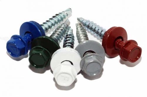 - Крепеж. Для крепления желательно выбрать саморезы для профнастила (они имеют ЭПДМ - прокладки, которые обеспечивают герметизацию креплений) или специальные заклепки. Связано это с тем, что обычные саморезы могут вызвать коррозию металла. Каждый лист крепится только после того, как выверен по горизонтали и вертикали, что позволит предотвратить образование щелей. Вначале монтируется первый лист, на него устанавливается второй таким образом, чтобы он лег, внахлест закрыв одну волну.