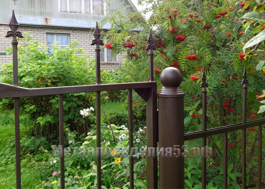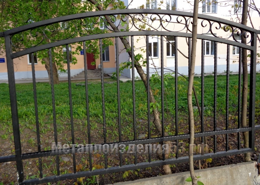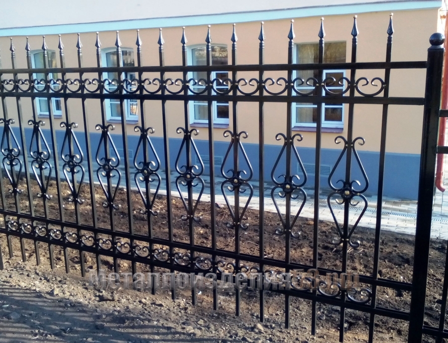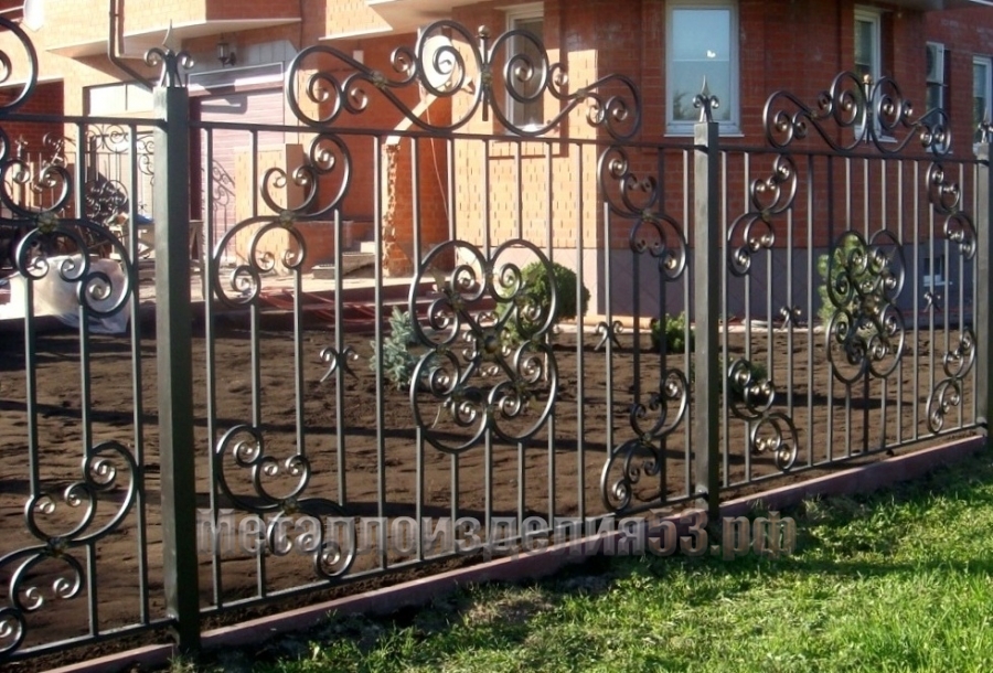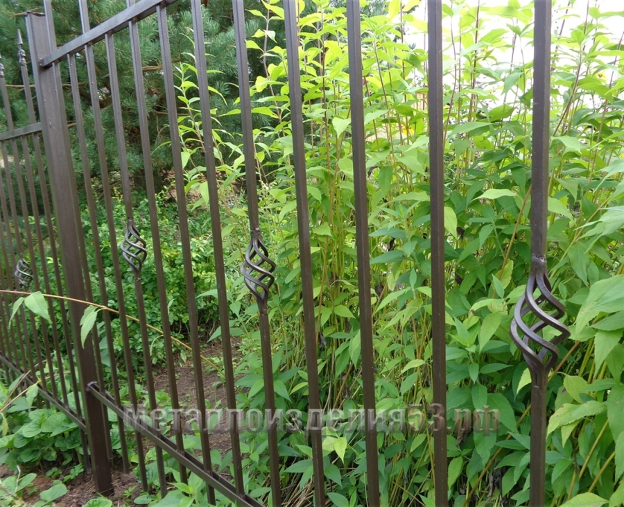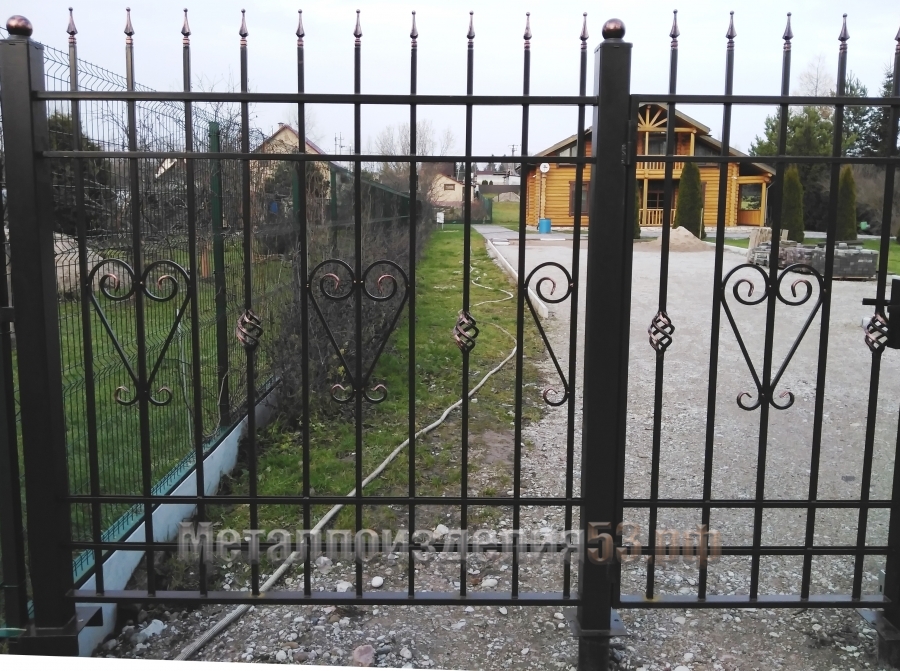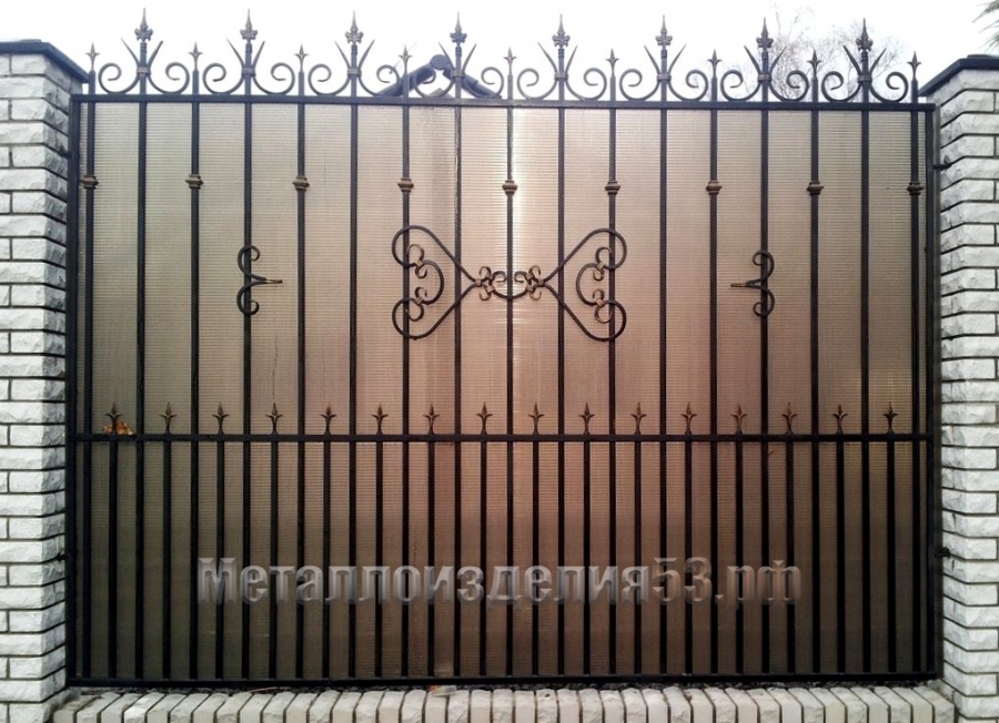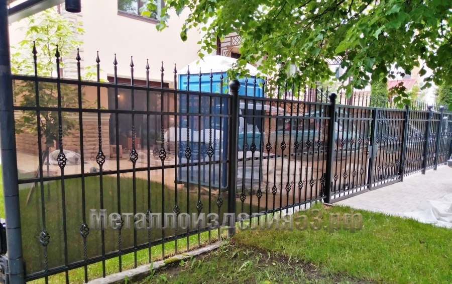 Забор металл. секционный с кованным декором, зашивка поликарбонатом