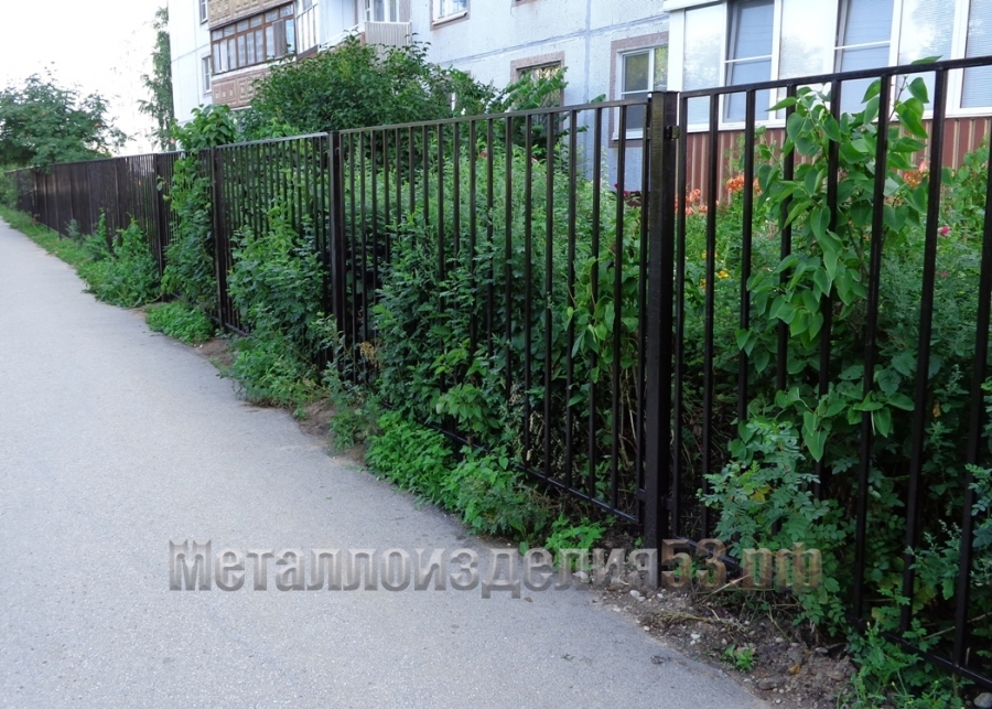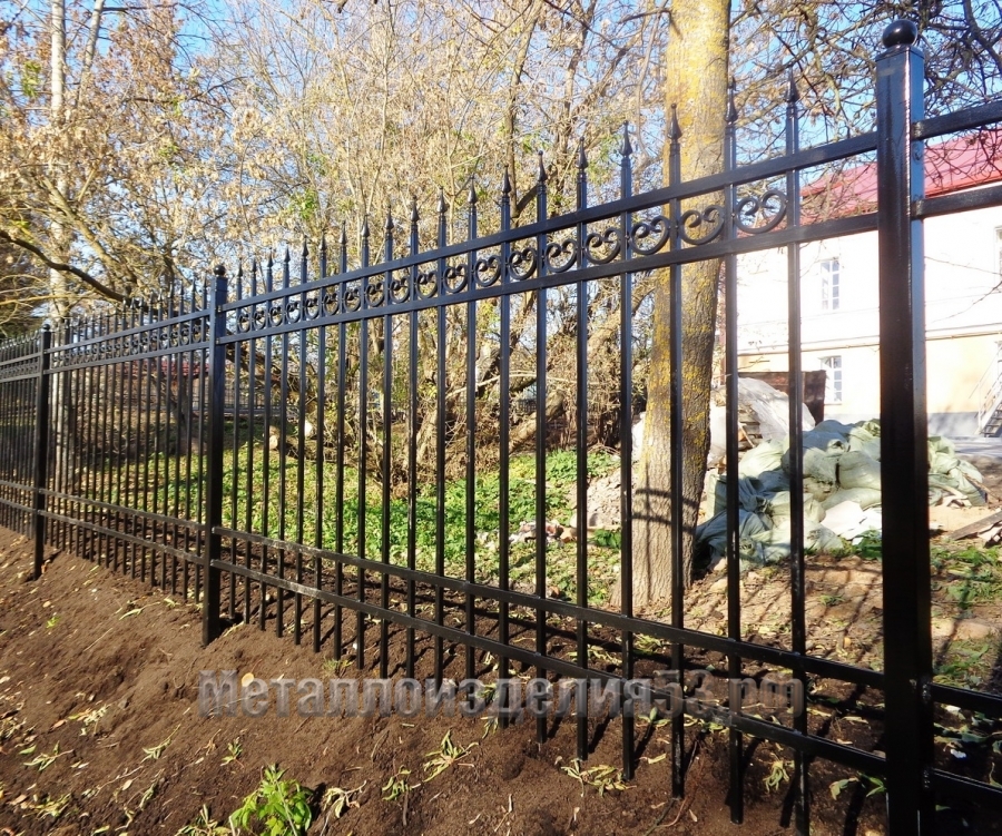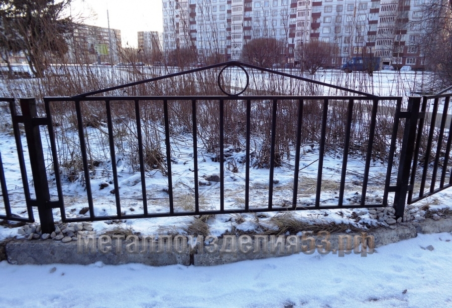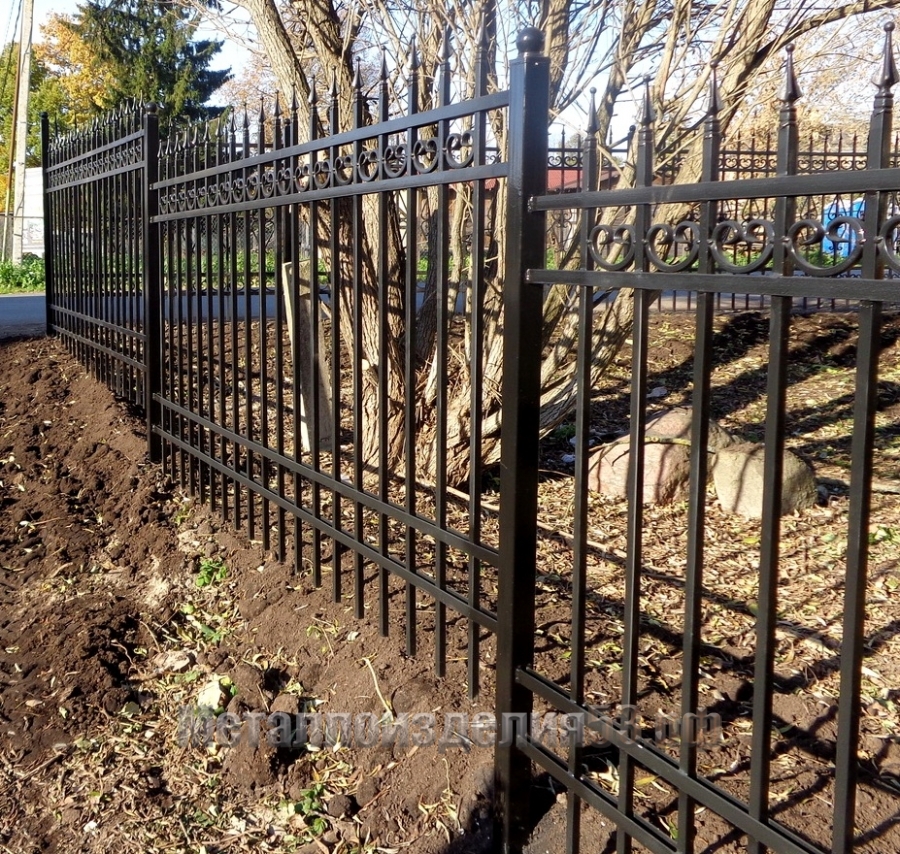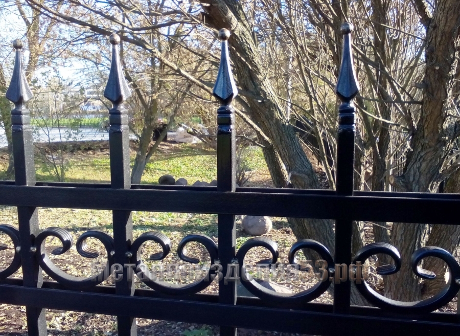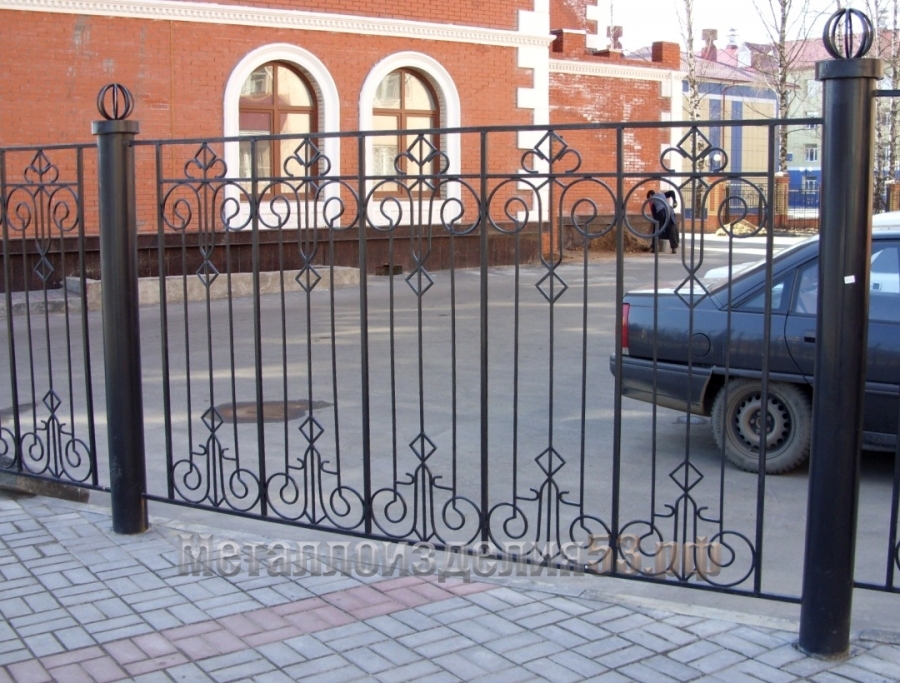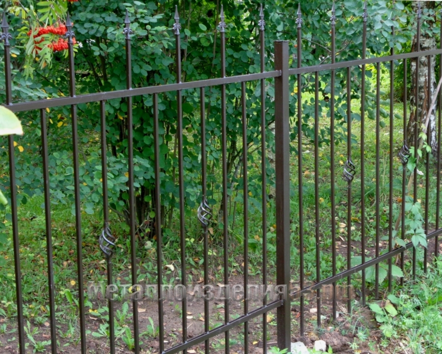 Забор металл. секционный с кованным декором, зашивка поликарбонатом