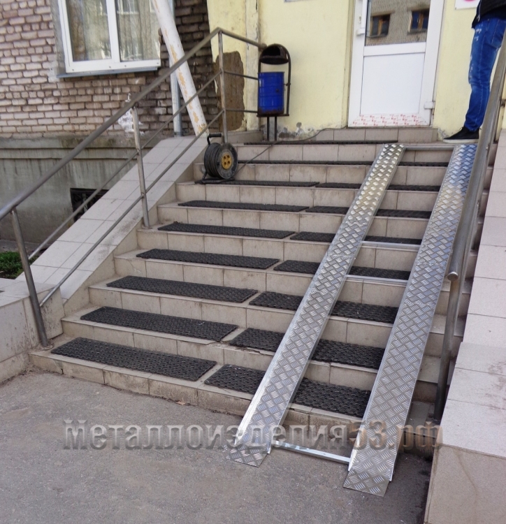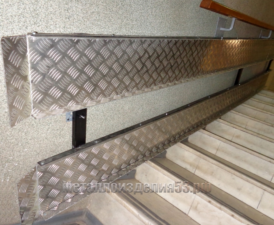 Пандус стационарный из рифленого алюминия на лестницу