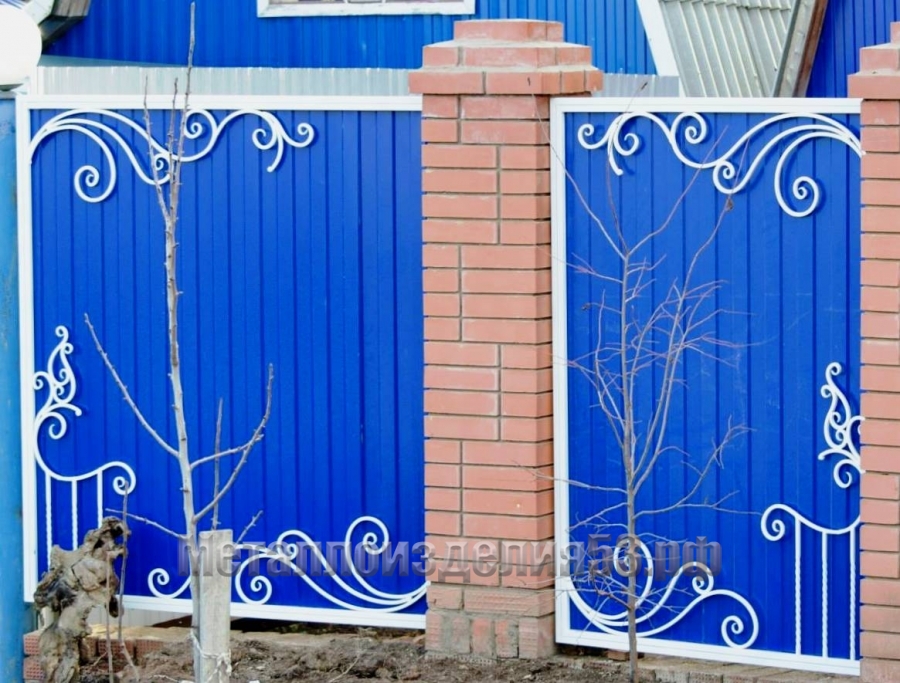 Забор из профлиста с кованным декором