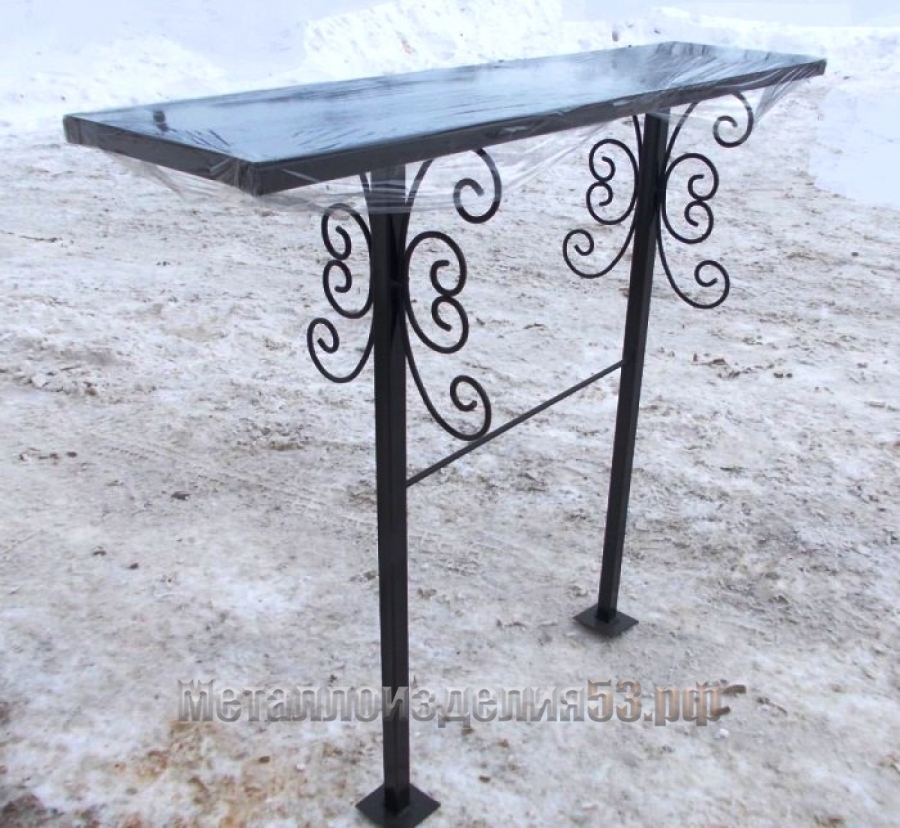Установка необычного навеса, изготовленного по эскизу заказчика в д. Сельцо