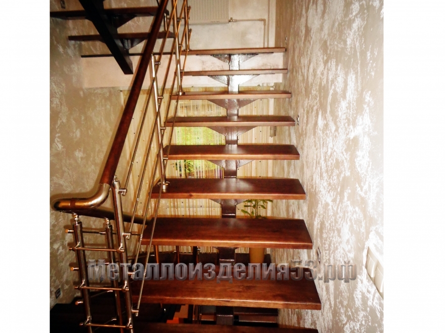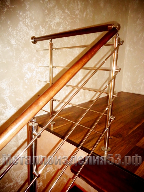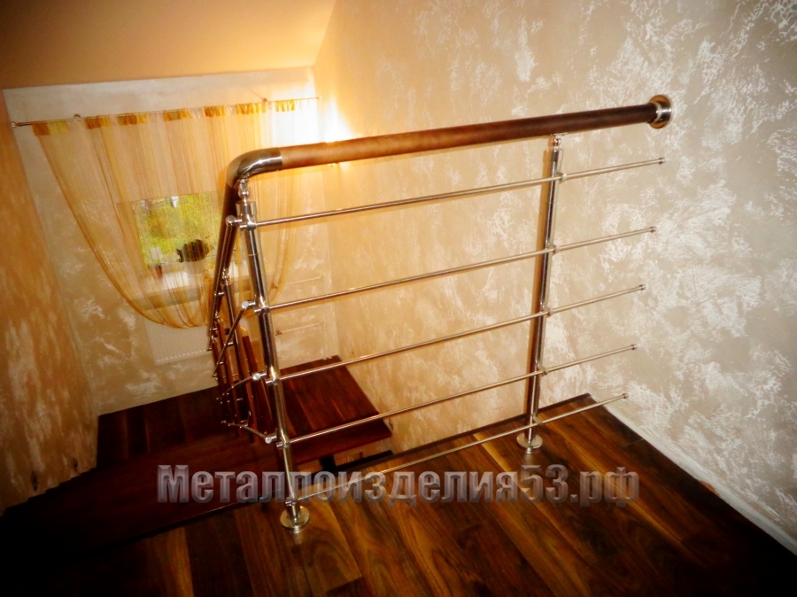 Перила из нержавеющей стали без ригелей, с деревянным поручнем