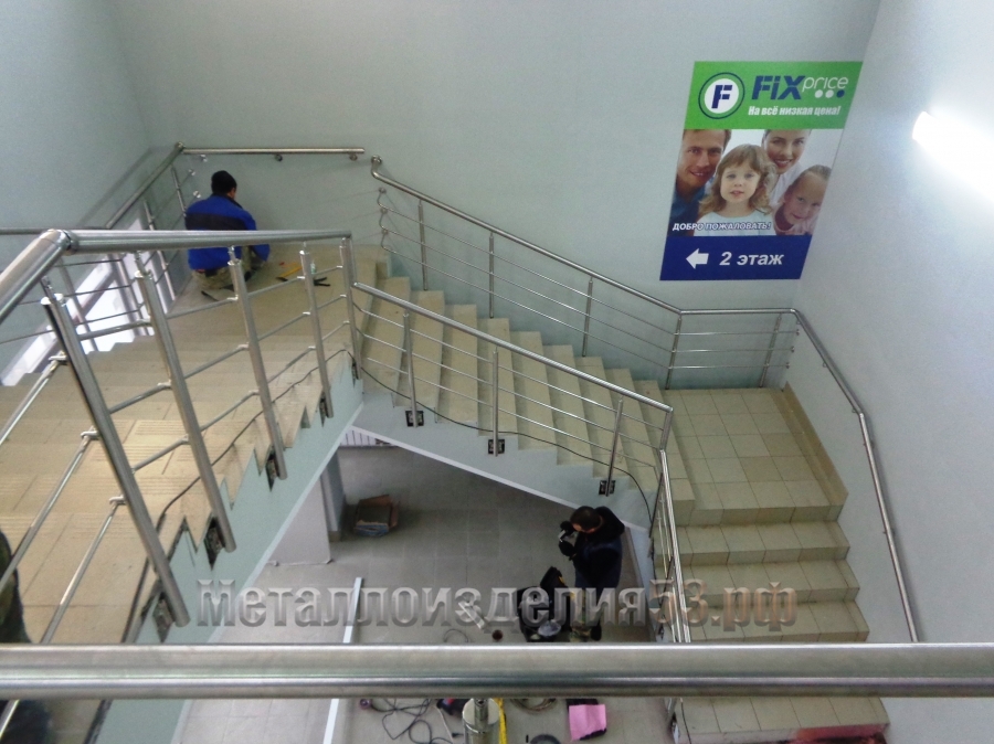 перила из нержавеющей стали с боковым креплением стоек ТЦ КОЛОС