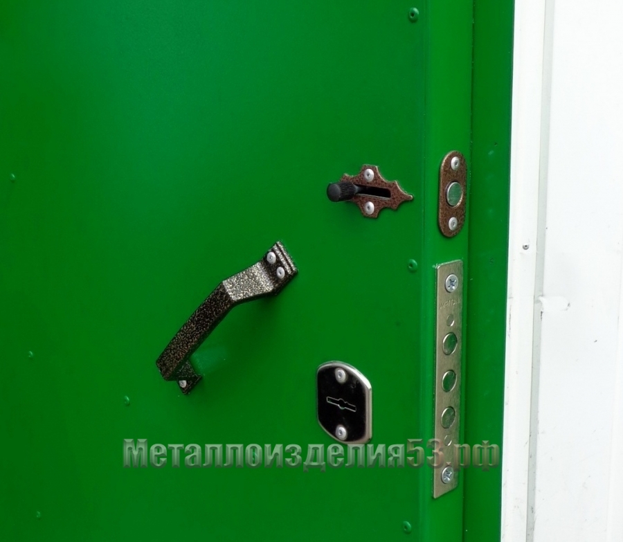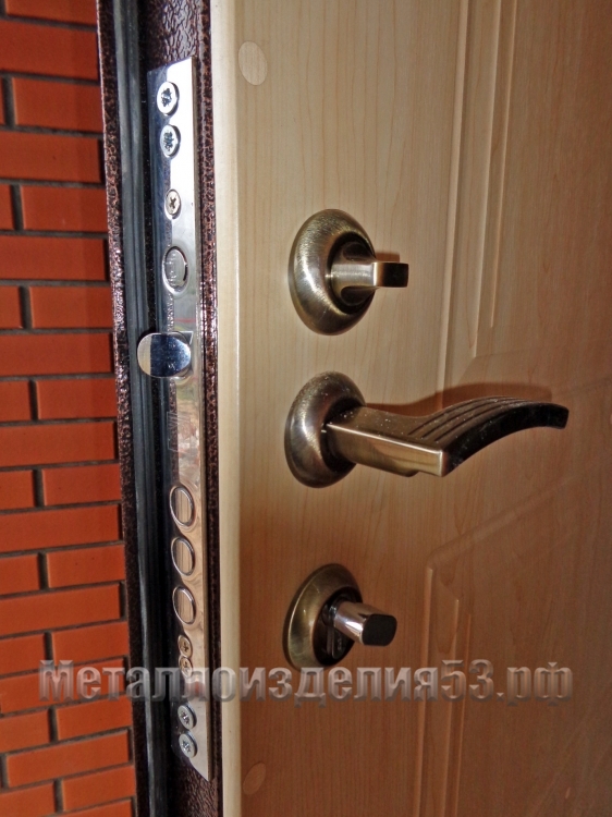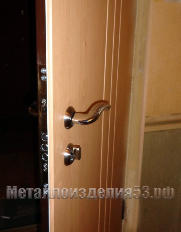 Замок, защелка и ручка двери металлической с МДФ
