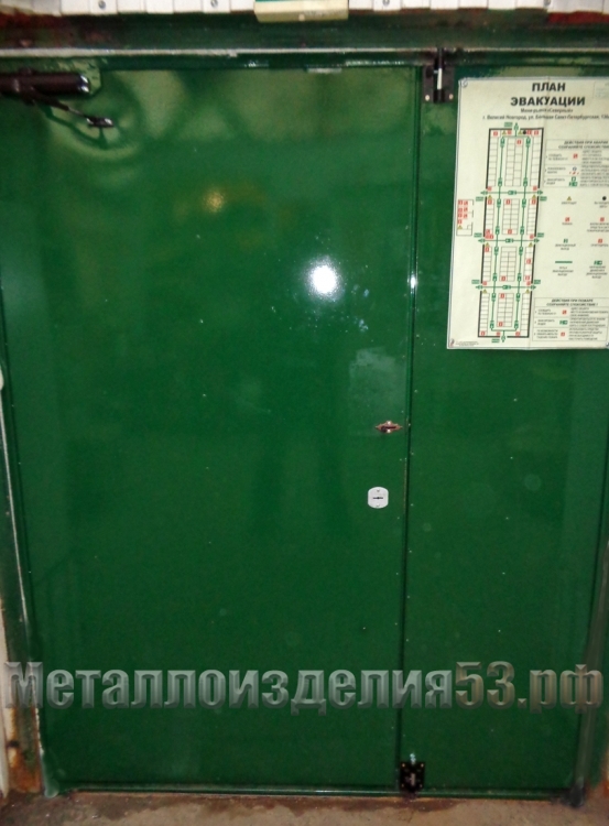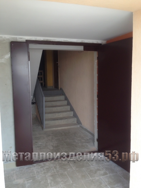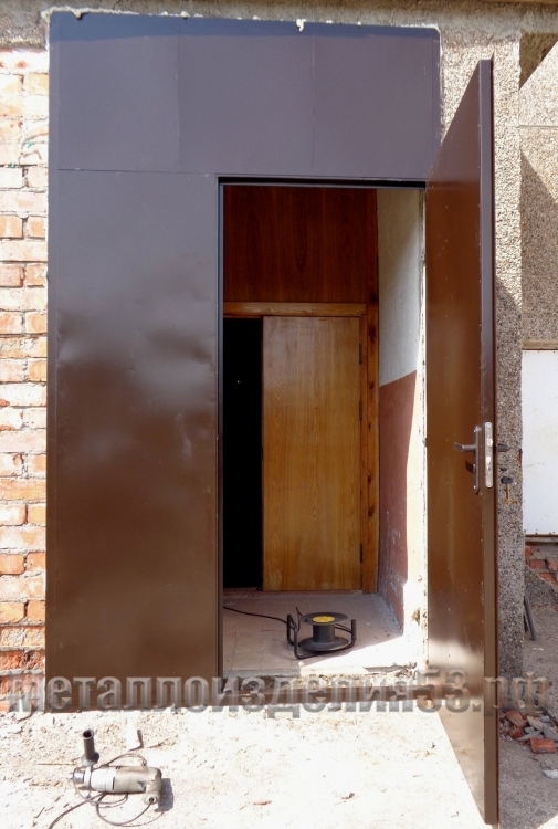 Двустворчатые металлические двери, вид изнутри