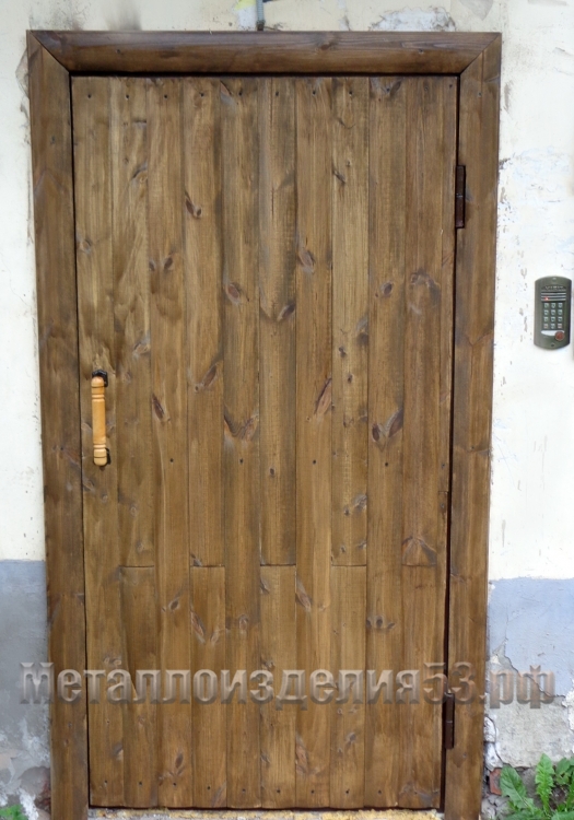 Дверь металлическая, снаружи блок-хаус, с домофоном