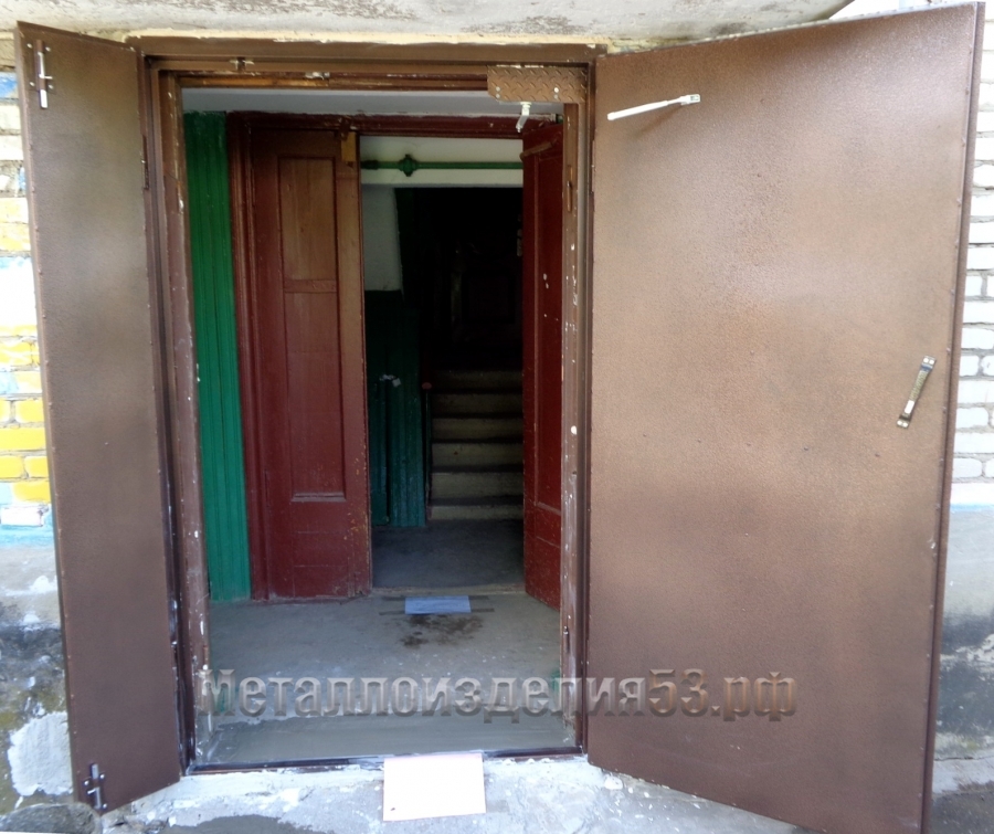 Дверь металлическая, обе створки открываются