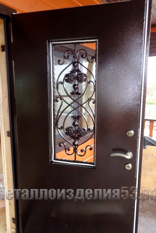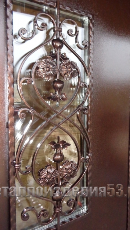 Дверь входная с кованным узором и стеклопакетом