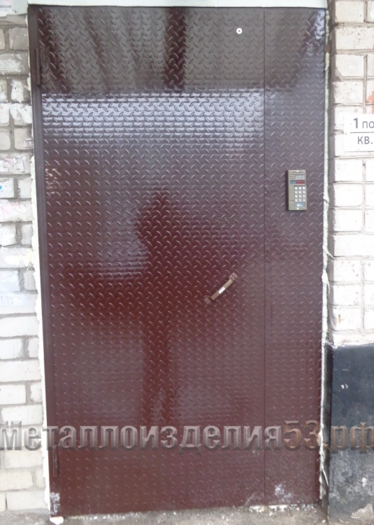 Дверь в подъезд рифленая, двустворчатая