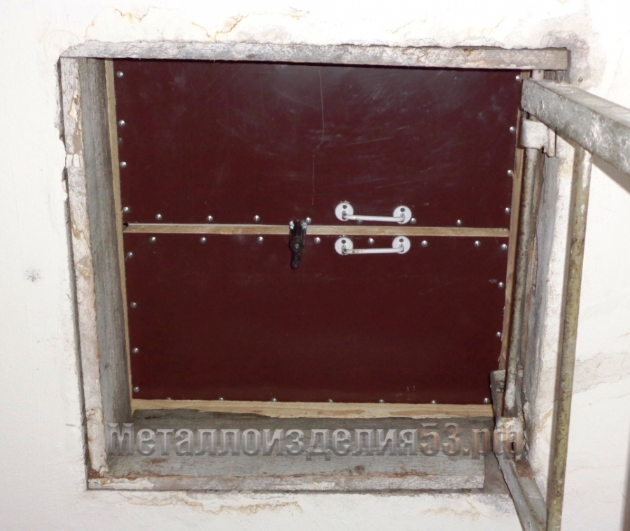 Дверь техническая с откидным окном, вид изнутри