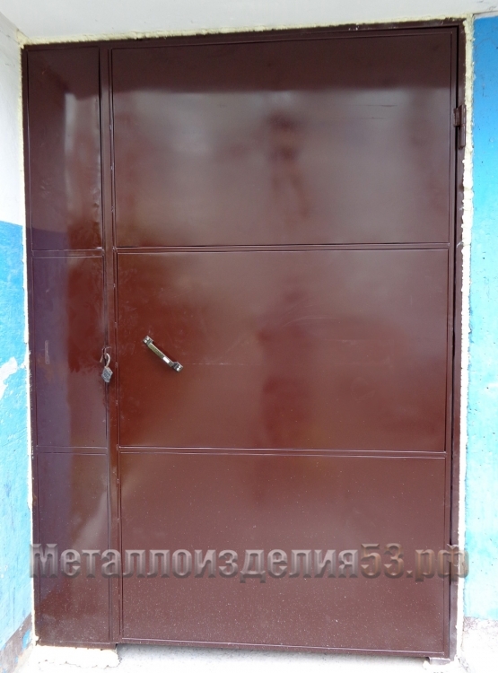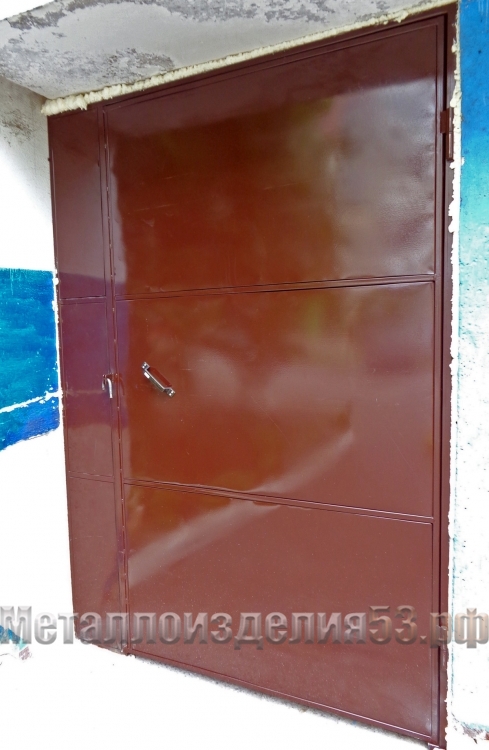 Дверь из частей метал. листа двустворчатая