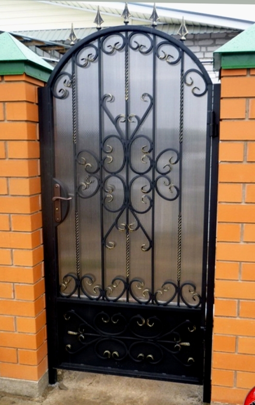 Мы изготавливаем сварные металлические калитки как с простым рисунком так и с элементами художественной ковки, пиками, с зашивкой поликарбонатом, профнастилом, метал. листом и др..