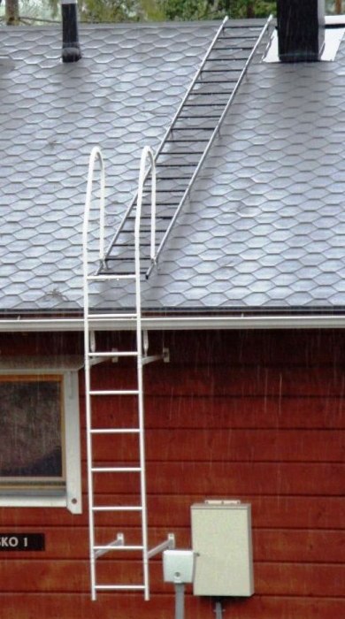 Металлические лестницы на крышу, чердак или в подвал надежны, долговечны и устойчивы к атмосферному воздействию при условии качественной покраски актикоррозионной грунт-эмалью и профессионального монтажа. При установке лестницы на кровлю в стационарном варианте, все стыки замазываются герметиком, чтобы не допустить протечки. Опорными точками служат конек и край ската.