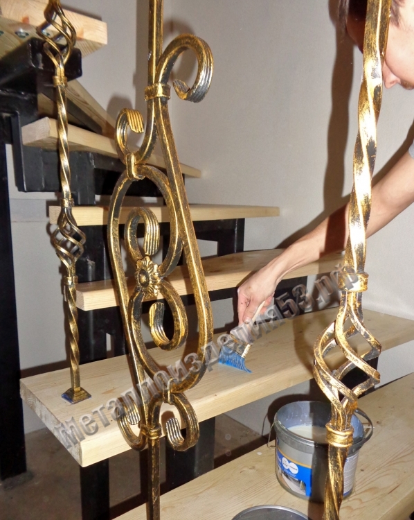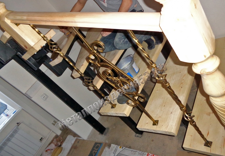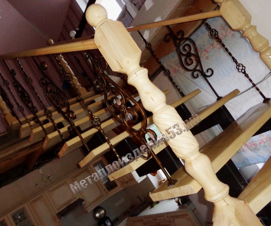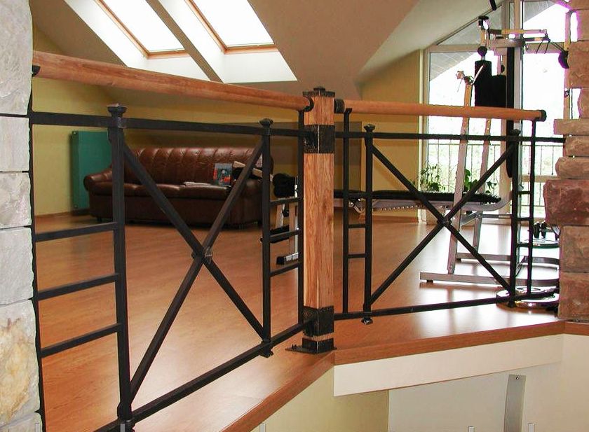 - Поручень: полоса 40х4мм, дерево