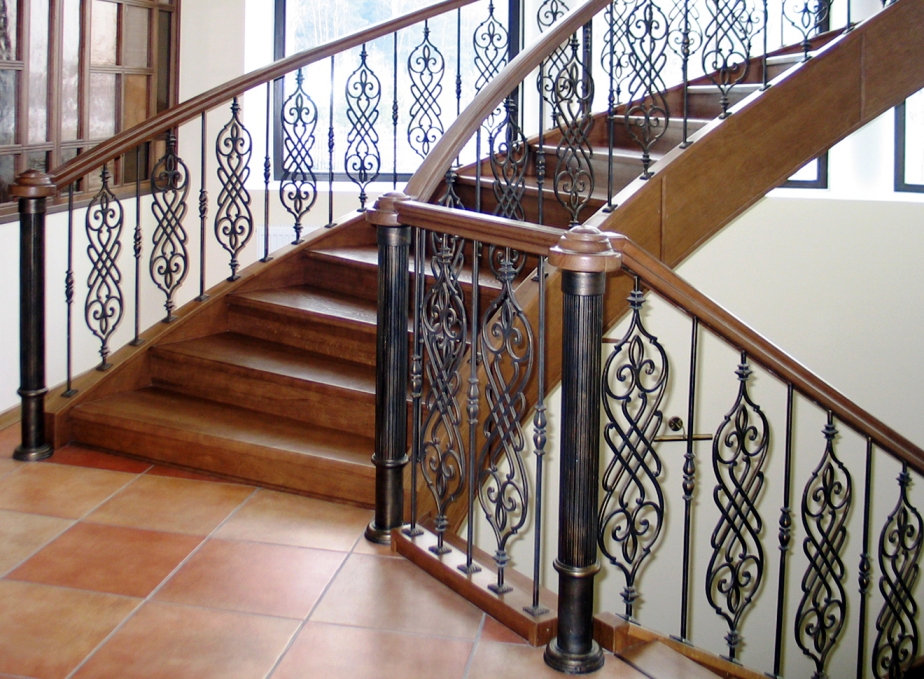 Перила лестницы с ковкой, покрытие порошок (артикул-ПРК10)