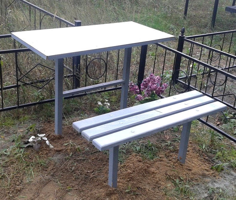 Ритуальные лавочка и столик на общем каркасе (артикул - МРС04)