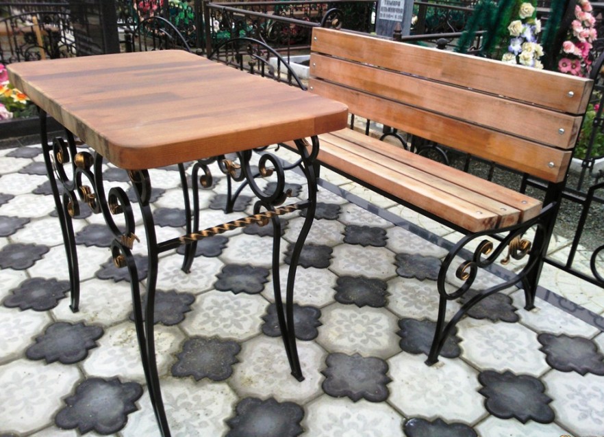 Кованая скамейка и столик на кладбище (артикул - МРК20)
