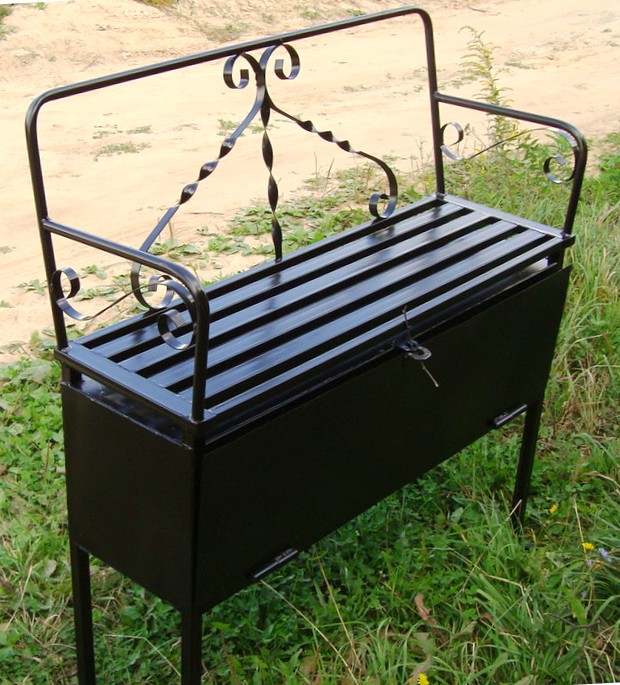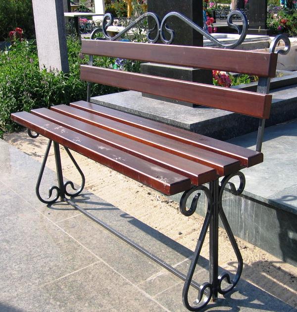 Лавка с кованым декором и ящиком для хранения на кладбище (артикул - МРК15)